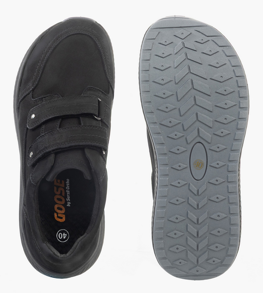 Особенностью моделей GOOSE является увеличенный мыс и эргономичная колодка. Обувь подойдет при повышенной полноте стопы, деформациях пальцев и суставов, при Hallux Valgus. Кроссовки в стиле спорт-кэжуал это отличный вариант для повседневных активностей в ритме города. Стопа чувствует себя свободно: пальцы не сдавливаются, исчезают болезненность и дискомфорт в ногах. Плотный задник предотвращает завал стопы, а мягкая подушечка вокруг голеностопа защищает от натирания. Анатомическая стелька поддерживает своды во время движения. Верх кроссовок выполнен из натуральной кожи. Благодаря воздухопроницаемой подкладке конструкция модели позволяет коже дышать, предотвращая потливость стоп. Амортизирующая подошва с легким перекатом поглощает ударные вибрации и равномерно распределяет нагрузку на суставы, существенно облегчая усталость. Протектор из резины способствует устойчивости на гладких поверхностях.